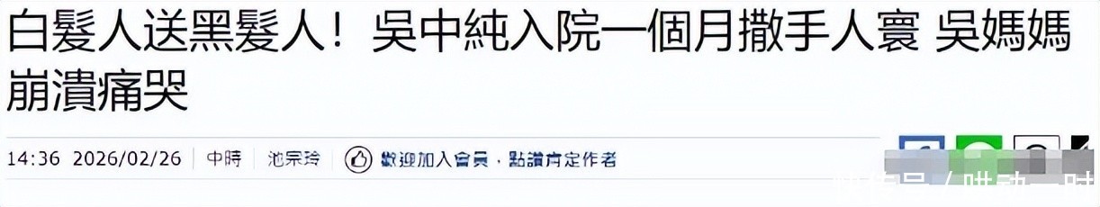 多方证实,2026年2月25日下午,台大医院加护病房内呼吸机悄然停止运转。